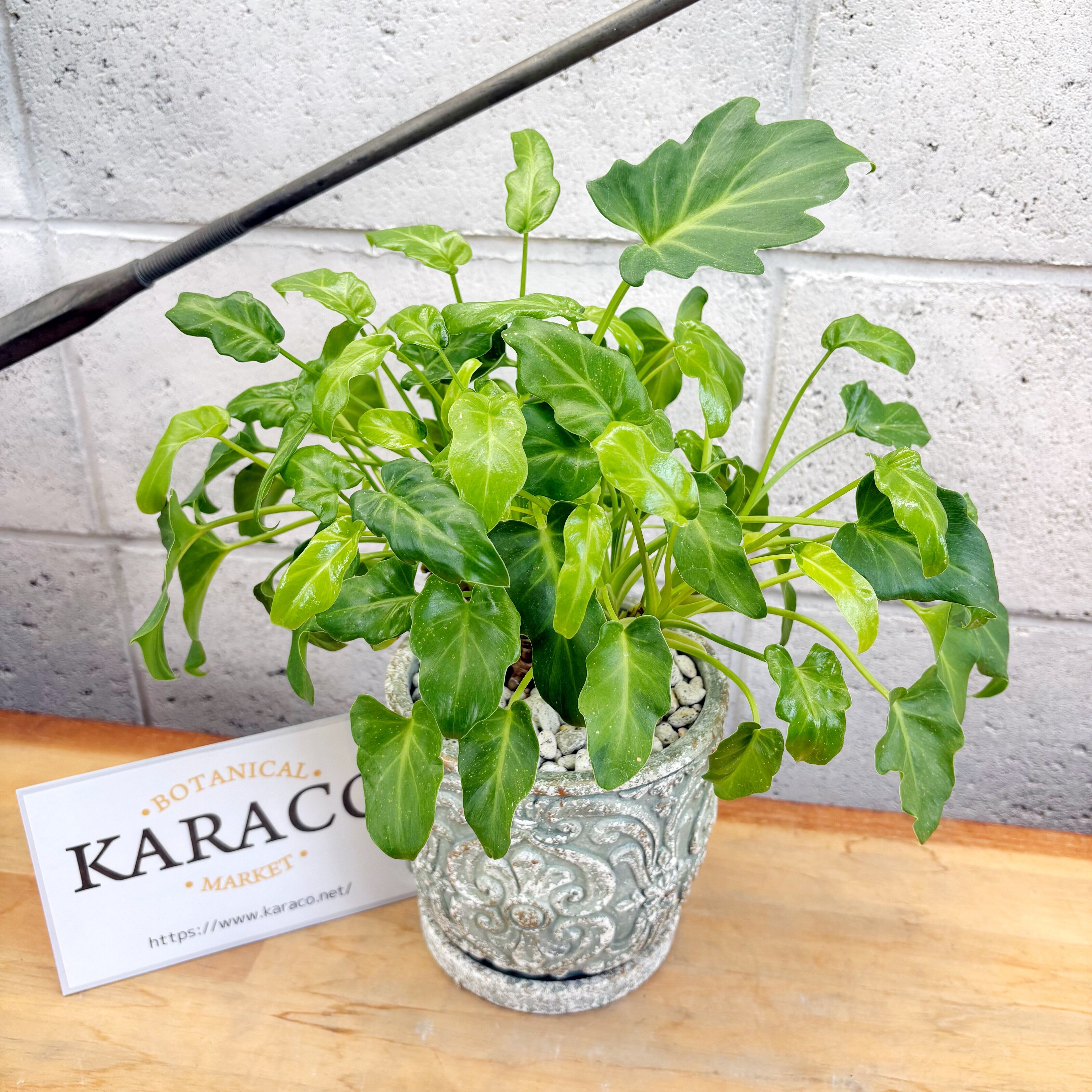 【観葉植物】フィロデンドロン クッカバラ ライム バリエガータ 斑入り 5号 Rosa セメント鉢
