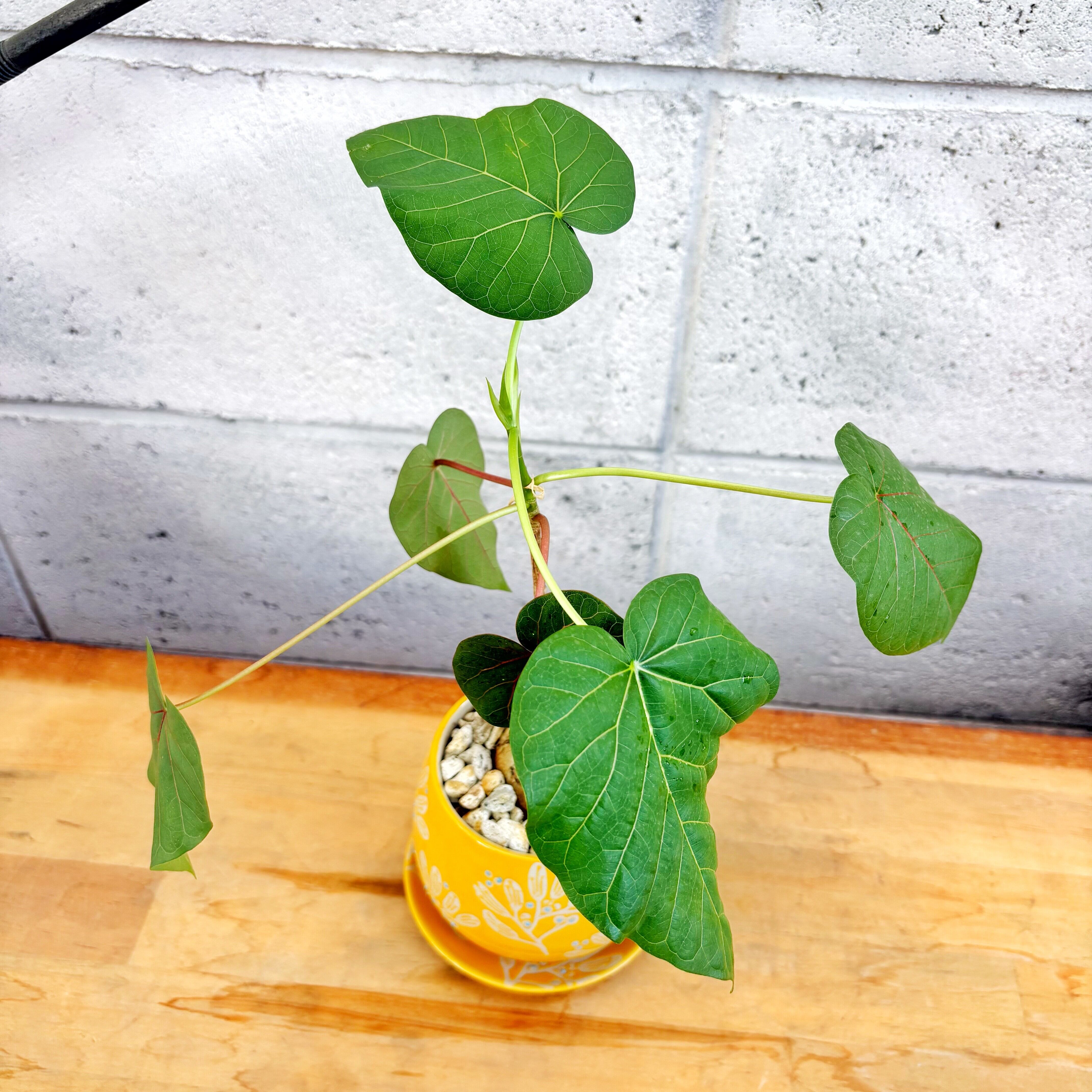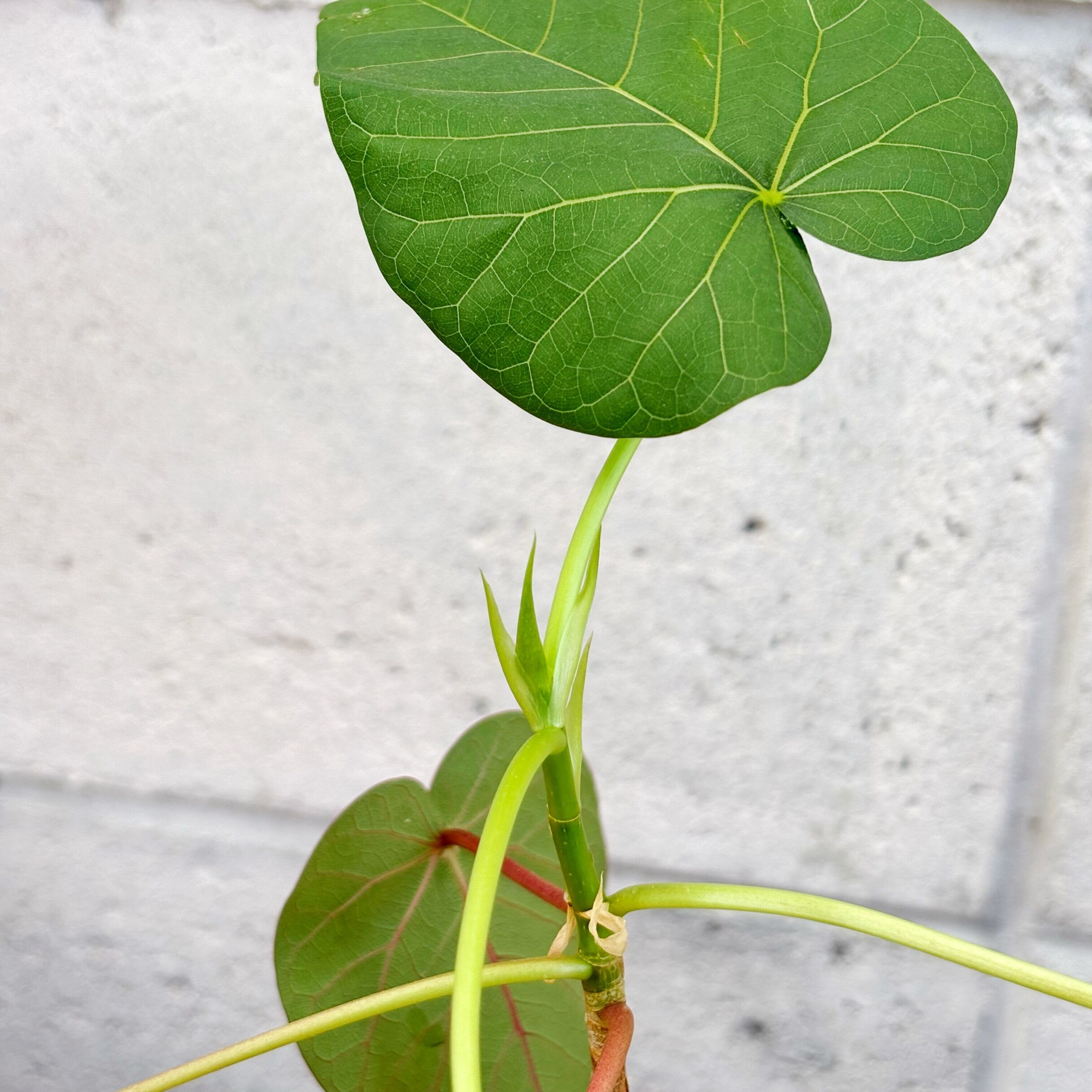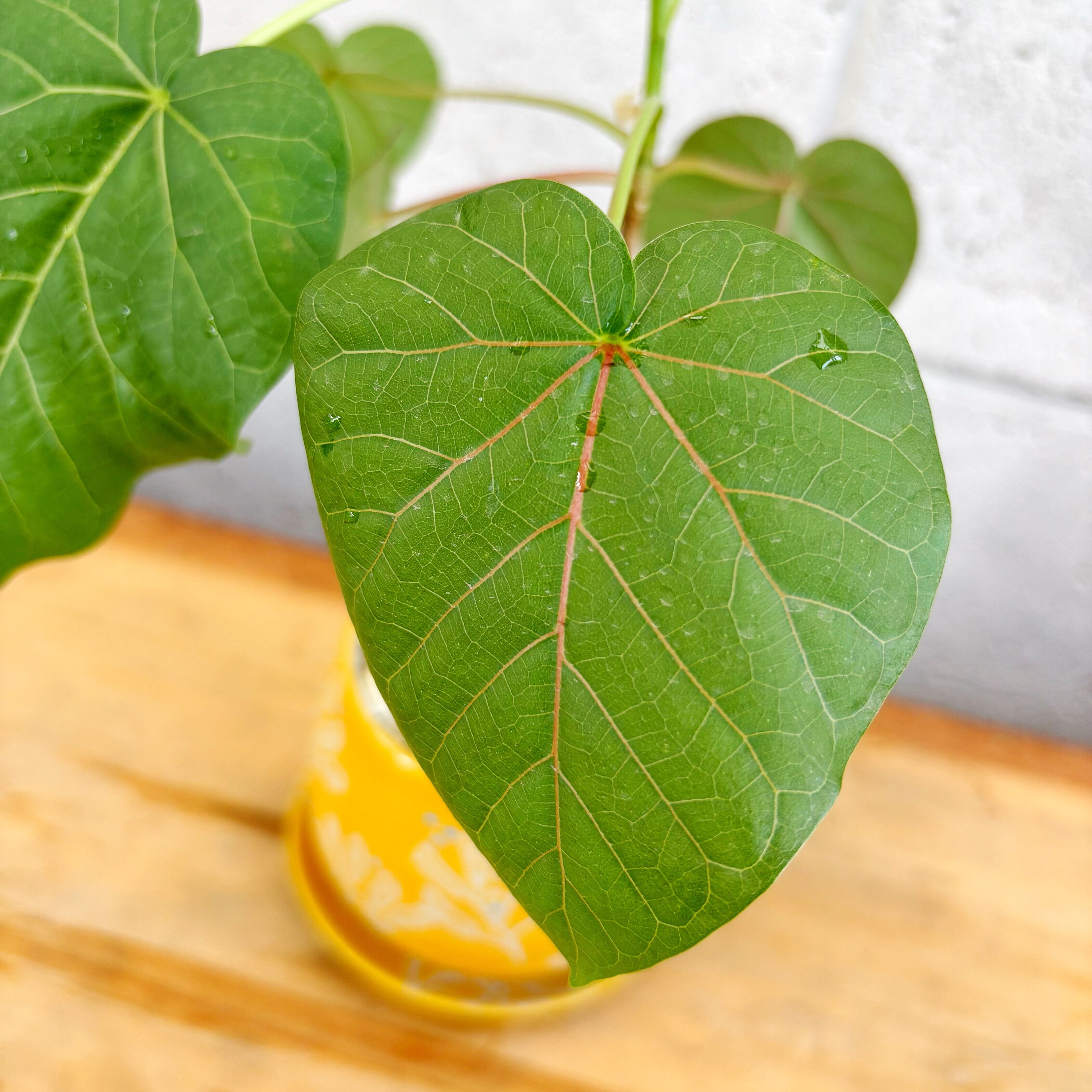 フィカス ペティオラリスは赤い葉脈とハート型の葉が印象的な塊根を持つ個性派の植物です。