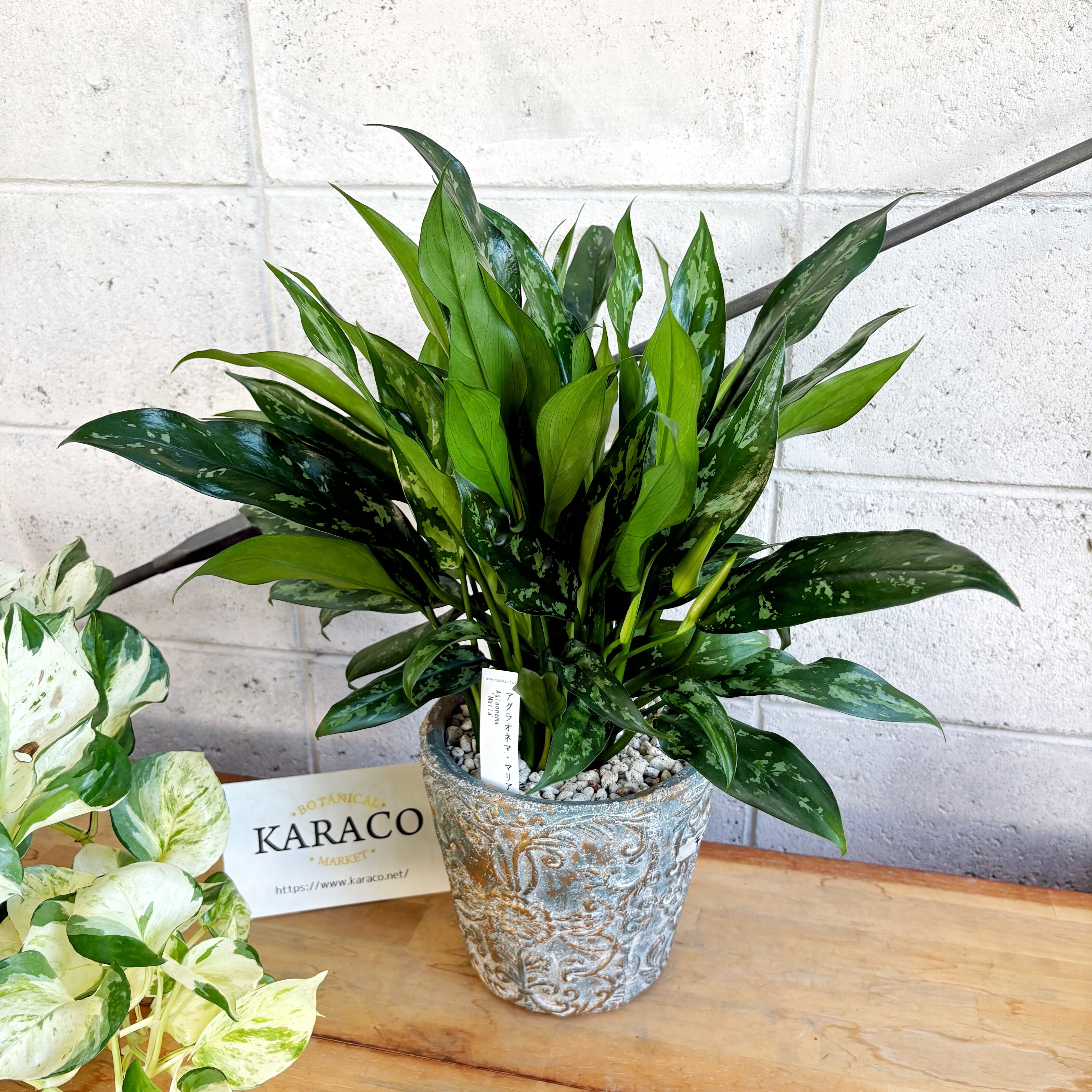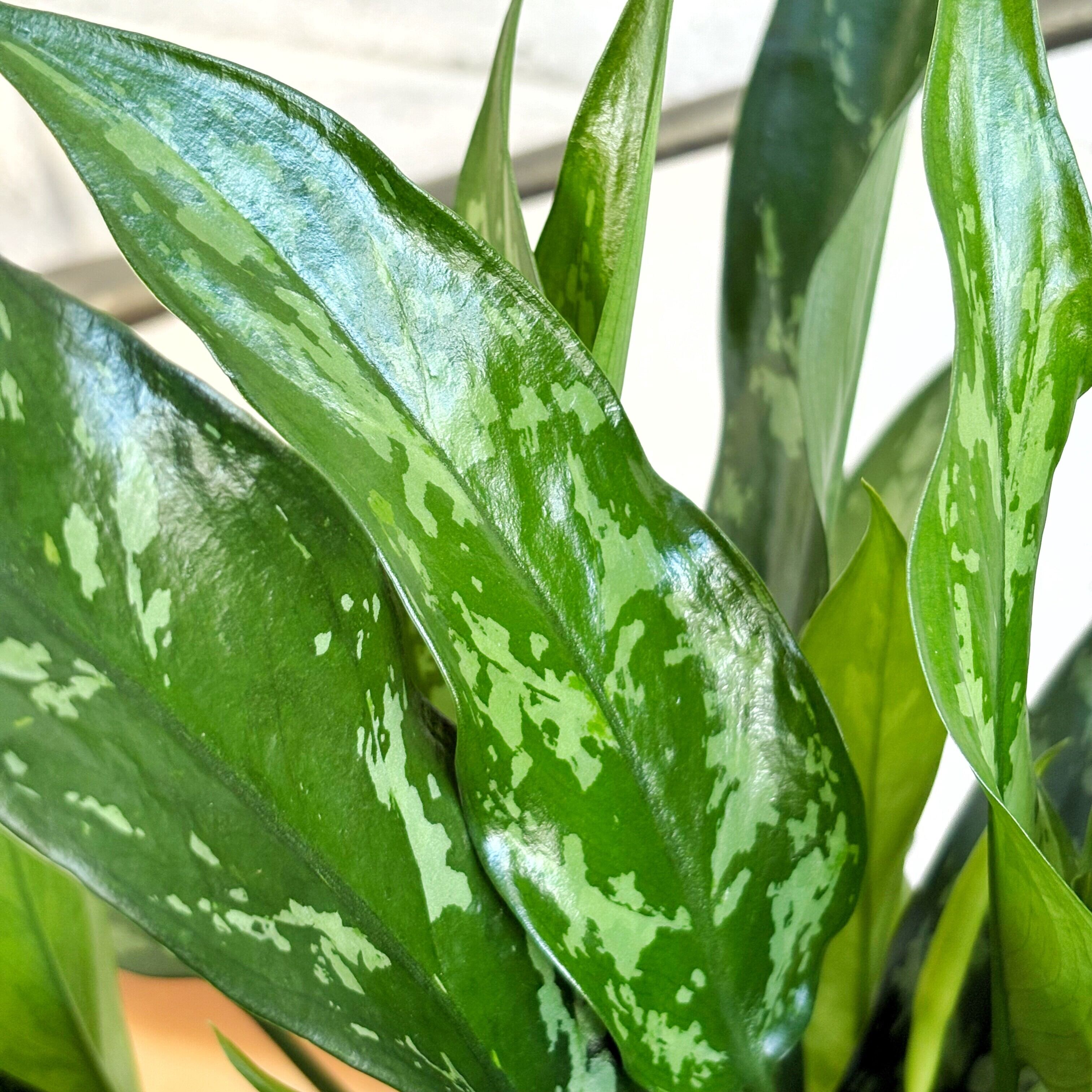 美しい濃緑にシルバーの斑が映える、東南アジア原産の観葉植物「アグラオネマ・マリア」。