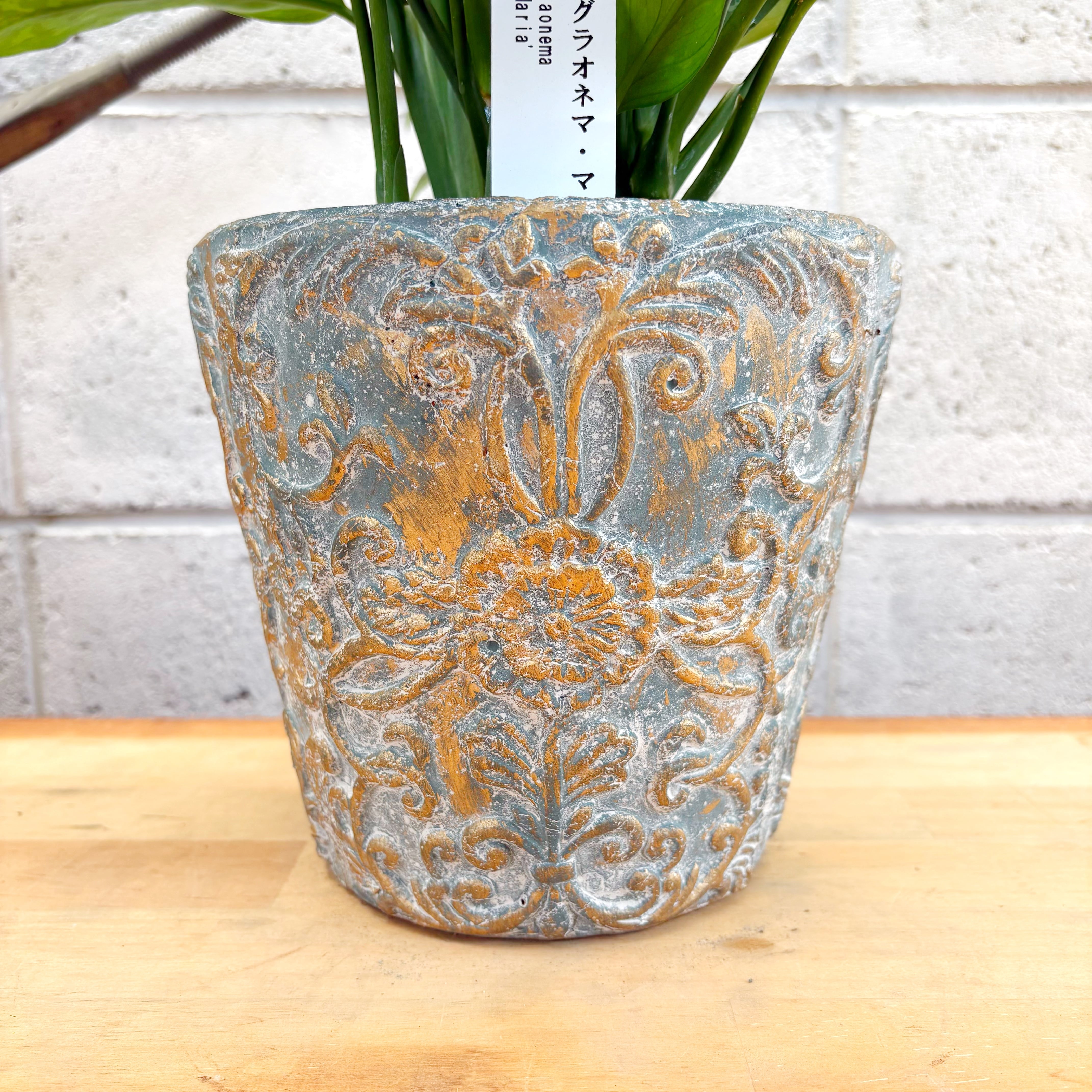 【送料無料】アグラオネマ マリア 陶器飾り鉢 6号 斑入り