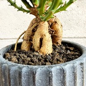 地中または地表に現れる大きな塊根が特徴で、ぷっくりとした形状が個性的。