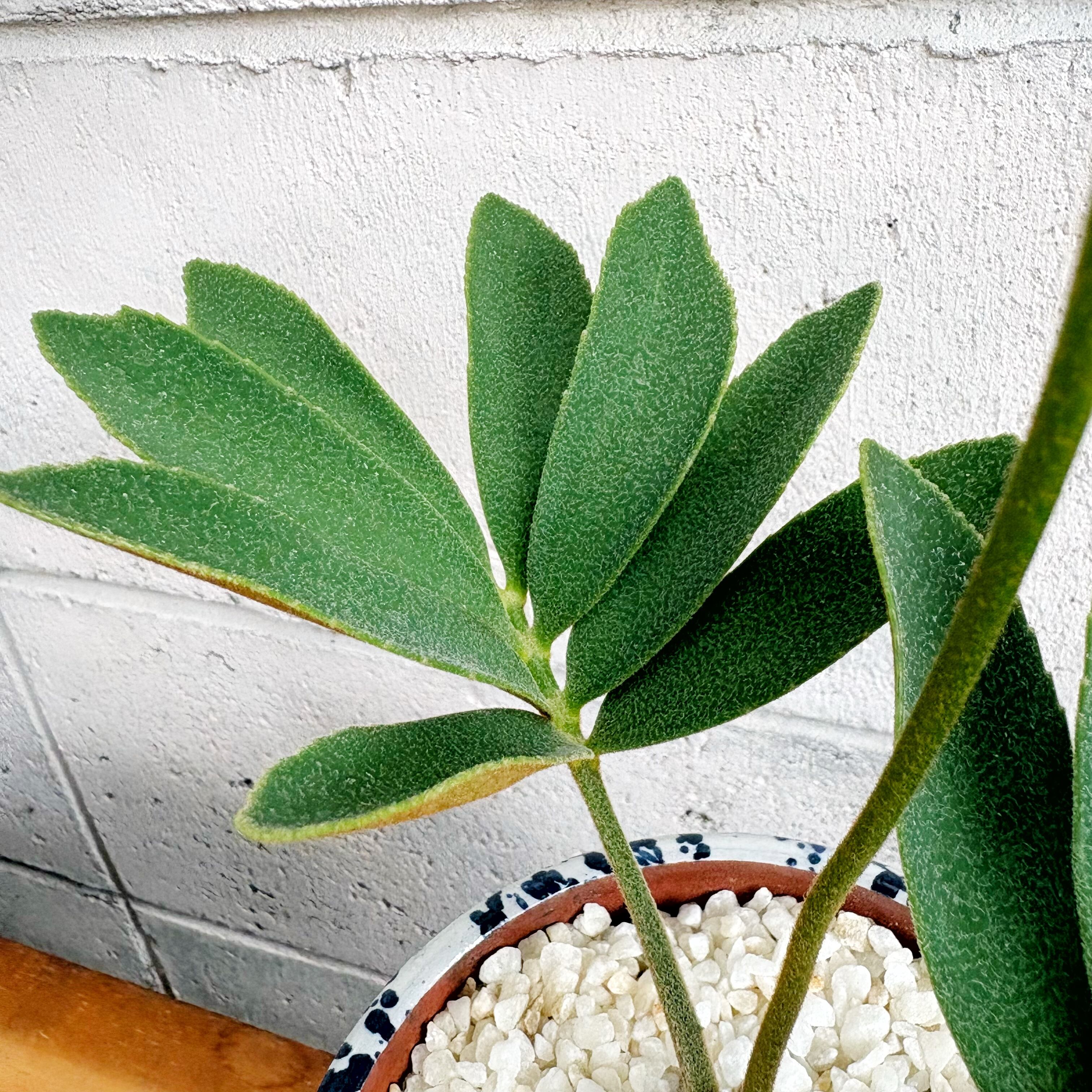 まるで古代植物を思わせる力強いシルエットと、厚みのある葉の質感が特徴的で、ひと鉢置くだけで空間を一気にモダンかつ洗練された雰囲気へと引き上げてくれます。