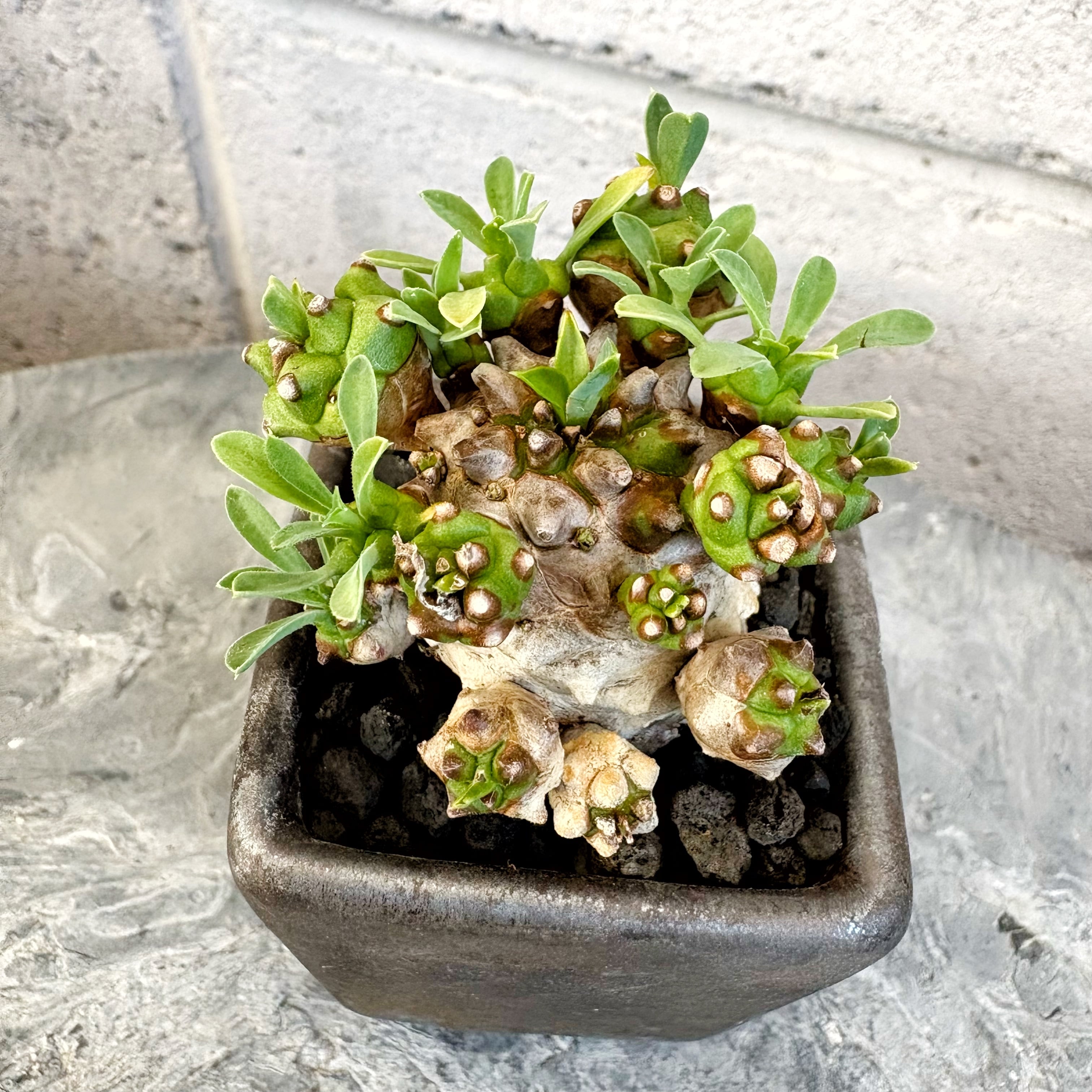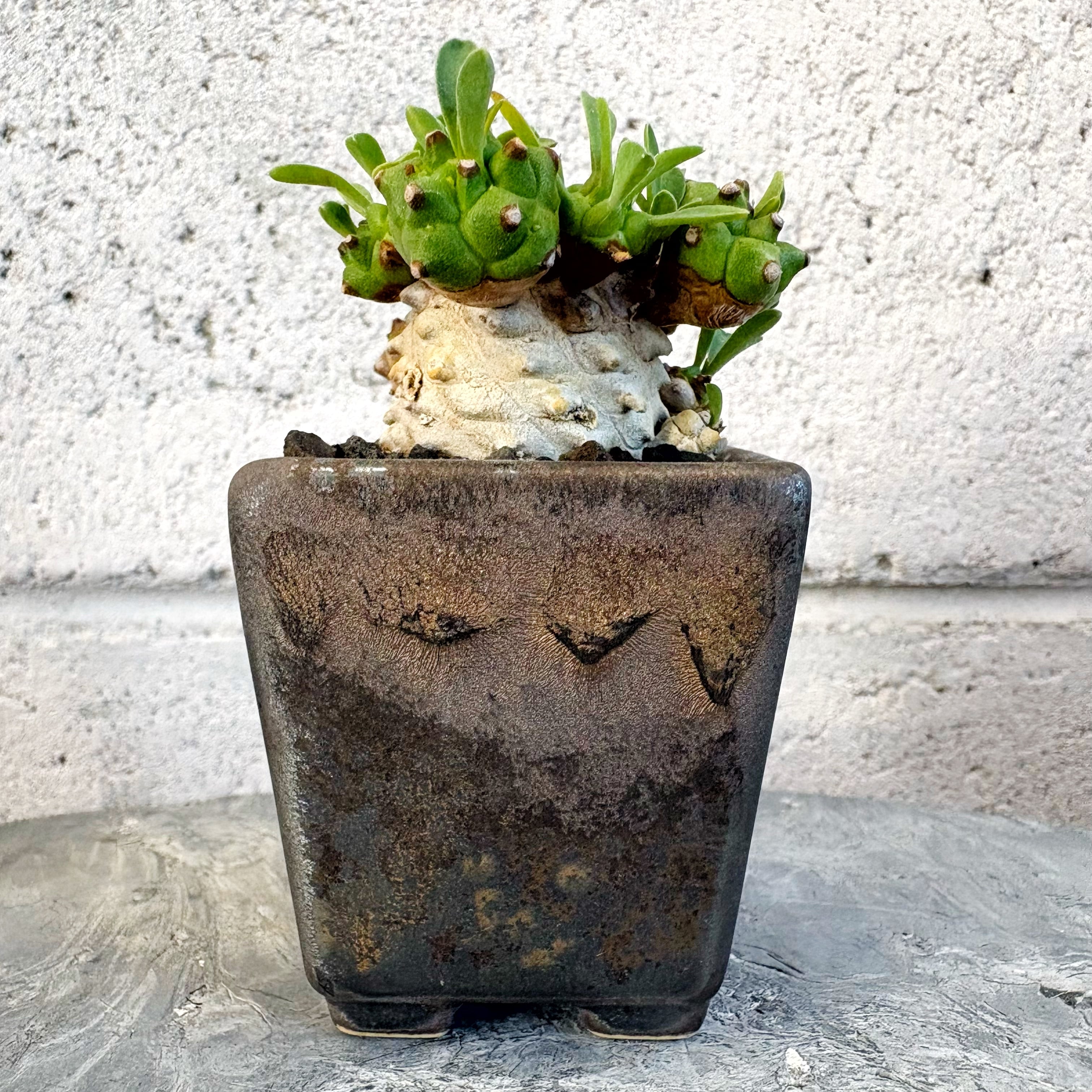 【1点もの】盆栽仕立て ユーフォルビア 峨眉山 信楽焼 陶器鉢 角鉢 多肉植物