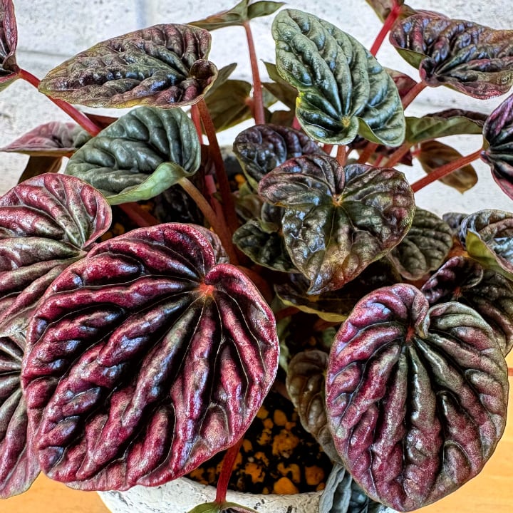 波打つような凹凸のある葉は深みのあるグリーンからワインレッドの色合いを帯び、光の当たり方によって表情を変える個性的な観葉植物です。