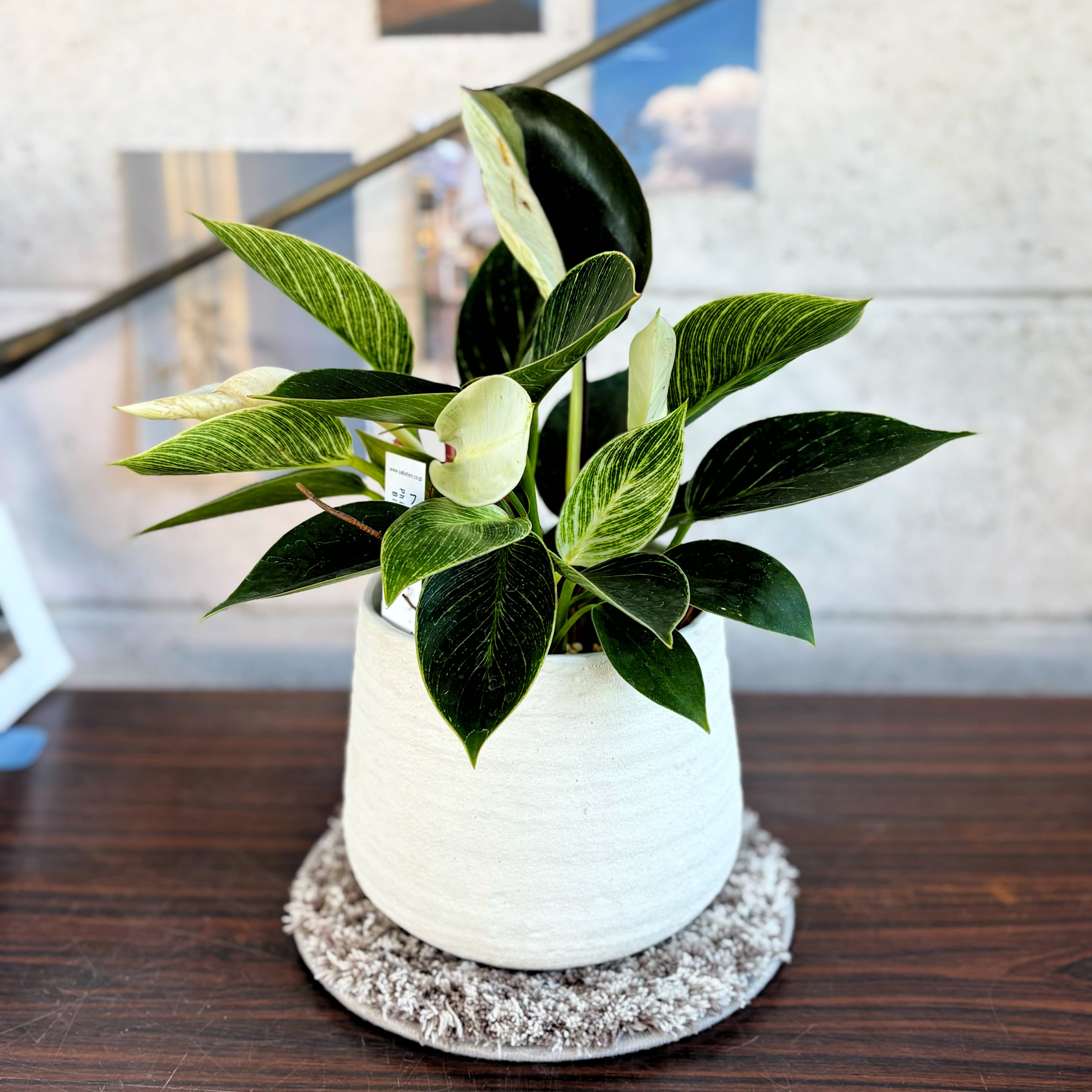 【現品】フィロデンドロン バーキン 斑入り ナチュラルな陶器鉢(5号相当)